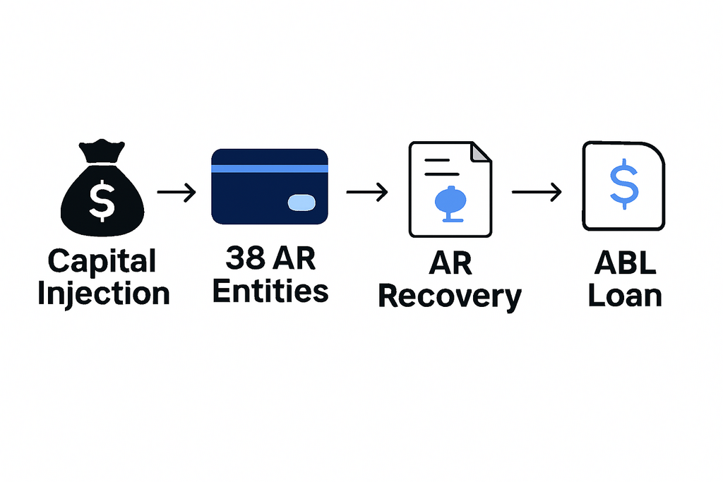 Structured payback from the first ABL draw. Equity retained across 76 Shelf Corps. Portfolio rollout of trust-backed 4-plexes.